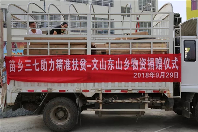 2018年9月28日上午,文山市東山鄉(xiāng)政府舉行了為貧困戶獻愛心物資捐贈活動,文山市東山鄉(xiāng)黨委書記楊紹敏、文山市殘聯(lián)理事長李英科、苗鄉(xiāng)三七董事長助理熊婷等參加了捐贈儀式。