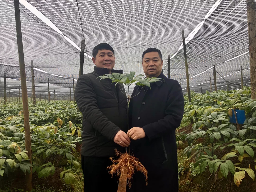 陜西華山大藥房醫(yī)藥連鎖有限公司董事長樊廣明(圖右)與苗鄉(xiāng)三七副董事長張兆浪(圖左)合影