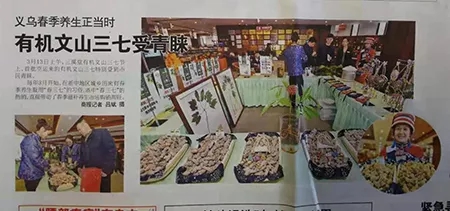 ? ? ? ?2019年3月13日上午,浙江義烏市三溪堂有機(jī)三七養(yǎng)生文化節(jié)上,首批空運(yùn)來(lái)的苗鄉(xiāng)有機(jī)三七受到了當(dāng)?shù)厥忻竦母叨仍u(píng)價(jià)。