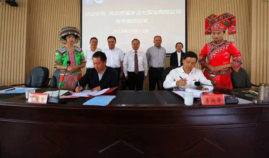2019年10月11日,苗鄉(xiāng)三七與文山學(xué)院簽訂協(xié)議,苗鄉(xiāng)三七支持文山學(xué)院成立三七文化研究院,并出資100萬元人民幣作為三七文化基金,全面啟動(dòng)一系列三七文化建設(shè)項(xiàng)目,這將是全面建設(shè)三七文化的星星之火!