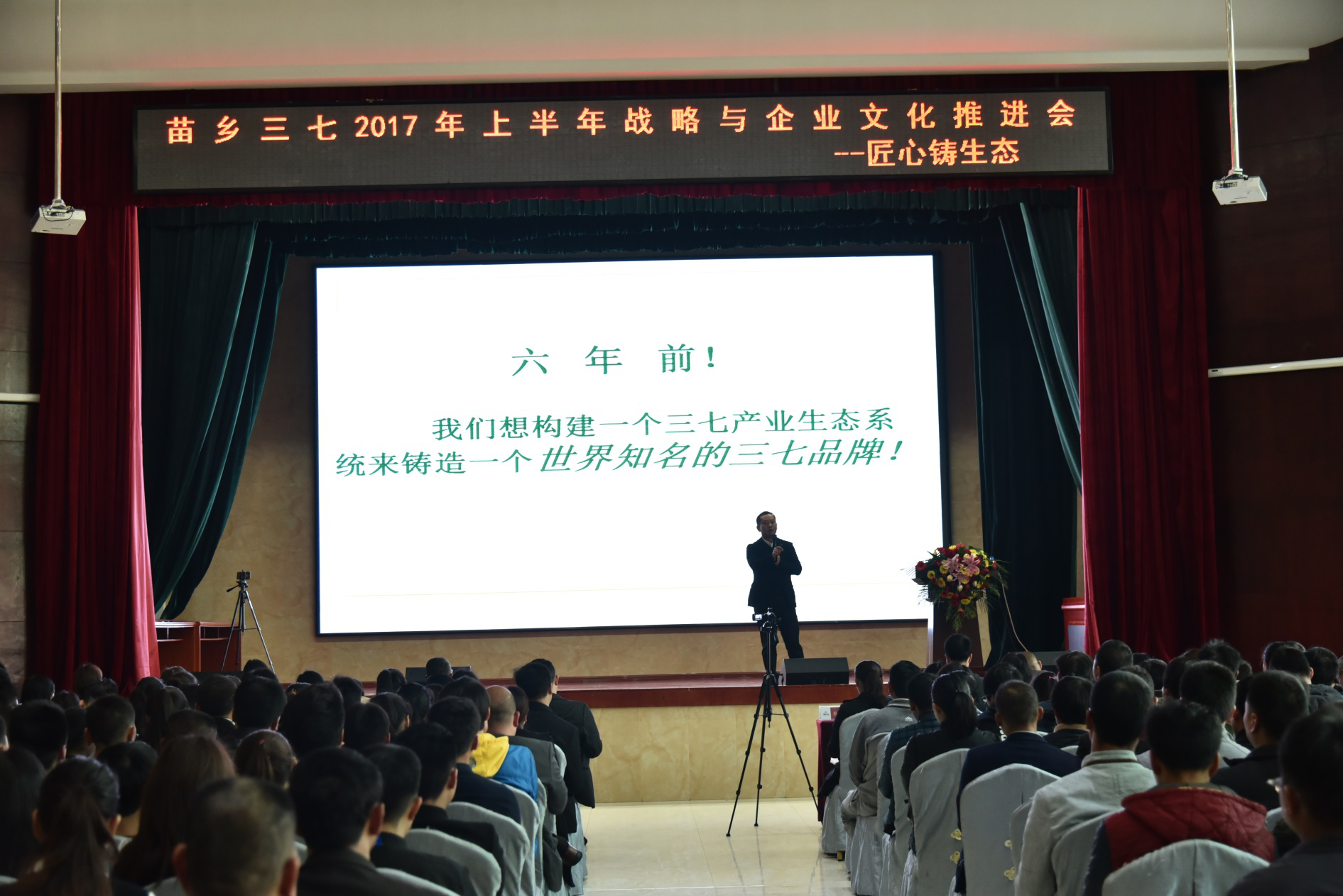2017年3月7日,苗鄉(xiāng)三七2017年上半年戰(zhàn)略與文化推進(jìn)會在文山普陽大酒店召開,股份公司、科技公司、實業(yè)公司、昆明分公司共338名代表參加了會議,本次會議的主題為“匠心鑄生態(tài)”。